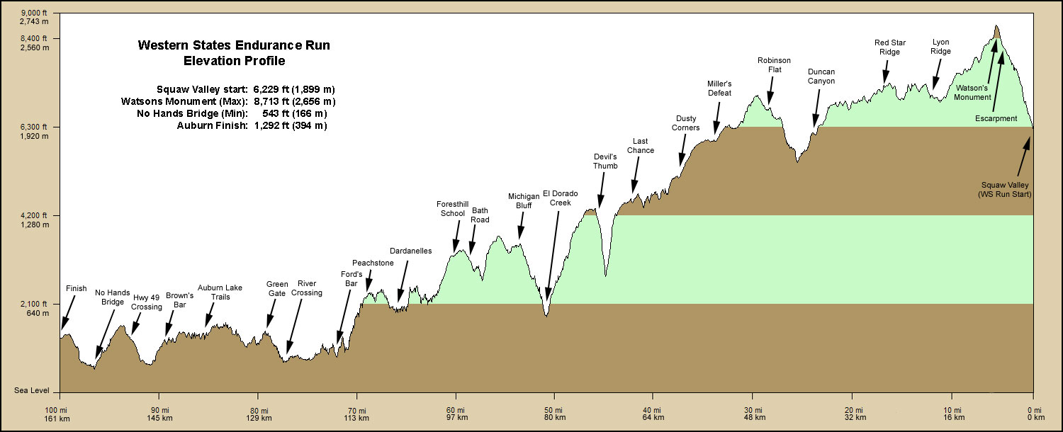 - Perfil de la Western States 100 Miles. ¡Ojo! Se lee de derecha a izquierda.