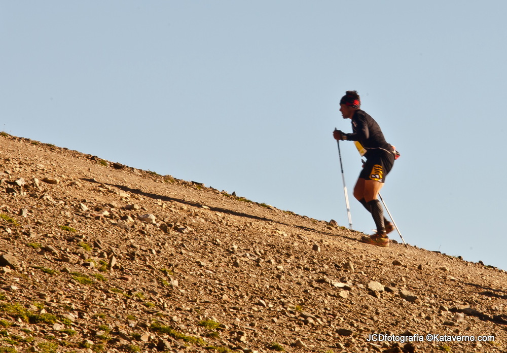 Ya desde la salida, como muestra la foto arriba, vimos a cinco ultreros apostando fuerte por delante: Miguel Heras, Tòfol Castanyer, Miguel Caballero, Manuel Merillas y Hernando. Este grupo se marchaba en cabeza juntos en un primer momento. Pasado ya el ecuador de la prueba, fueron Luis Alberto Hernando y Miguel Heras los que subieron la apuesta un poco más, tirando solo hacia delante.  Finalmente, Miguel acabaría cediendo ante el empuje de Luis Alberto y pagaría incluso su valentía llegando tercero a meta, desfondado, superado por un Tófol Castanyer que supo hacer su propia carrera para terminar en el segundo cajón del podio. Luis Alberto Hernando completó la prueba en 10h23m, con Tófol Castanyer en 10h25m y Miguel Heras cerrando el podio en 10h27m. Carrera muy igualada en todos los sentidos, como confirman los cronos en meta.