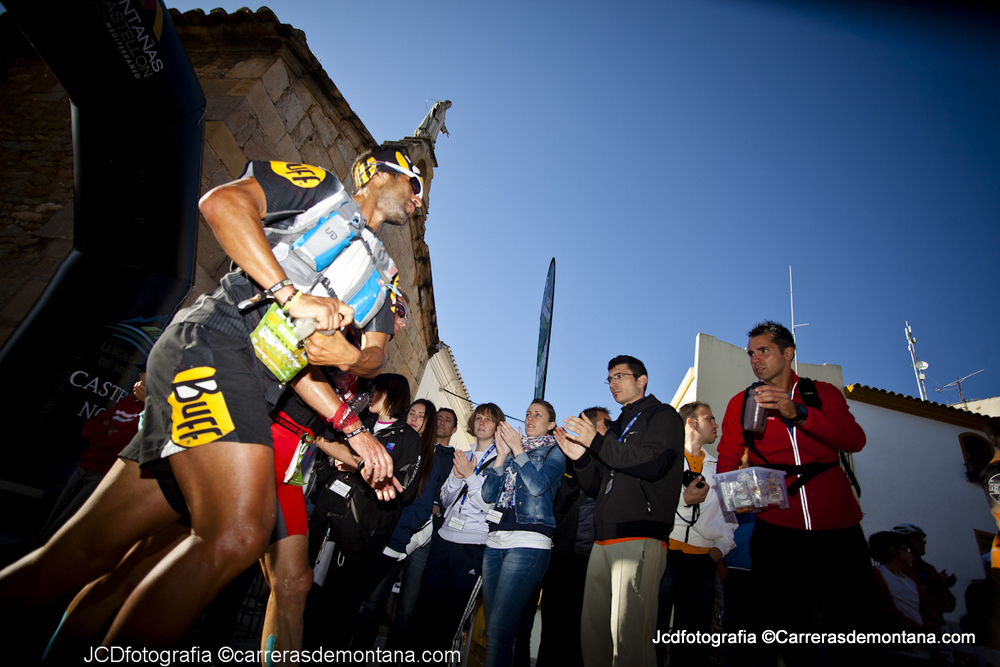 Fue por fin en el control de Vistabella, ya en el km91 donde vimos pasar primero a Miguel. Las diferencias recortadas a Dani lo habían sido de forma muy progresiva, hasta que una vez alcanzado Miguel decidió dar un nuevo empujón para descolgarlo pronto y evitar que cogiera su rueda. Dani siguió corriendo con gran inteligencia, dejándole ir en las rampas más duras para reengancharse despues en el llano mientras le fue posible.