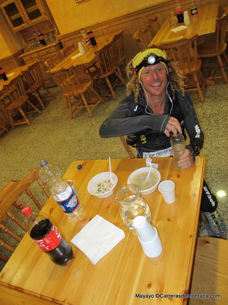 Entre los demás, Le Saux representaba quizá mejor que nadie el estilo clásico del Tor, corriendo solo y sin apoyo externo alguno que pudieramos ver en ninguno de los controles de los que fuimos testigos. Y por cierto, Christophe aboradaba estos 330k/D+24.000m apenas una semana despues de hacer top25 en los 168k del UTMB ¡Tremendo!