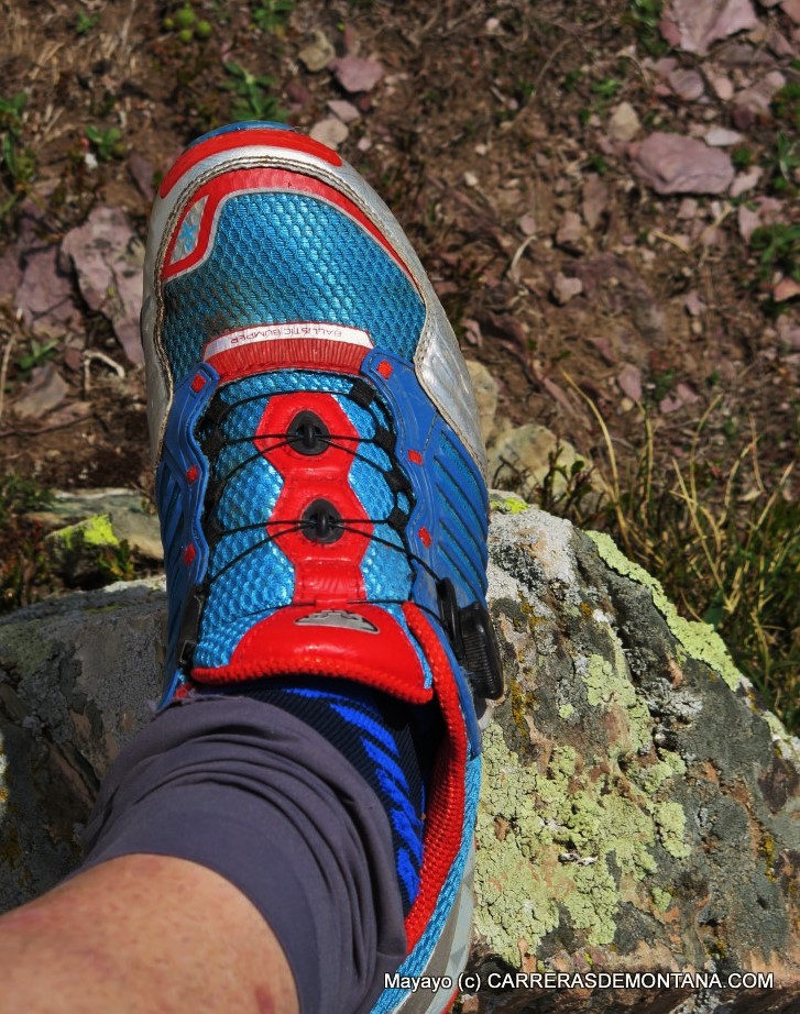 Primeras impresiones: Con ese perfil tan definido, desde que me las puse por primera vez tenía claro que pedían roca afilada, neveros y puro monte, aunque tambien pensé que había otras cuestiones más delicadas que resolver con ellas, para ver hasta qué tipo de corredor y uso podrían darle buen servicio. Así las preguntas que me hecho con más insistencia: “¿Hasta cuantos kilómetros me aguantan rodando cómodo?” y “¿Cuánto durarán una suela y zapatilla en este terreno tan recio sin rajar?”