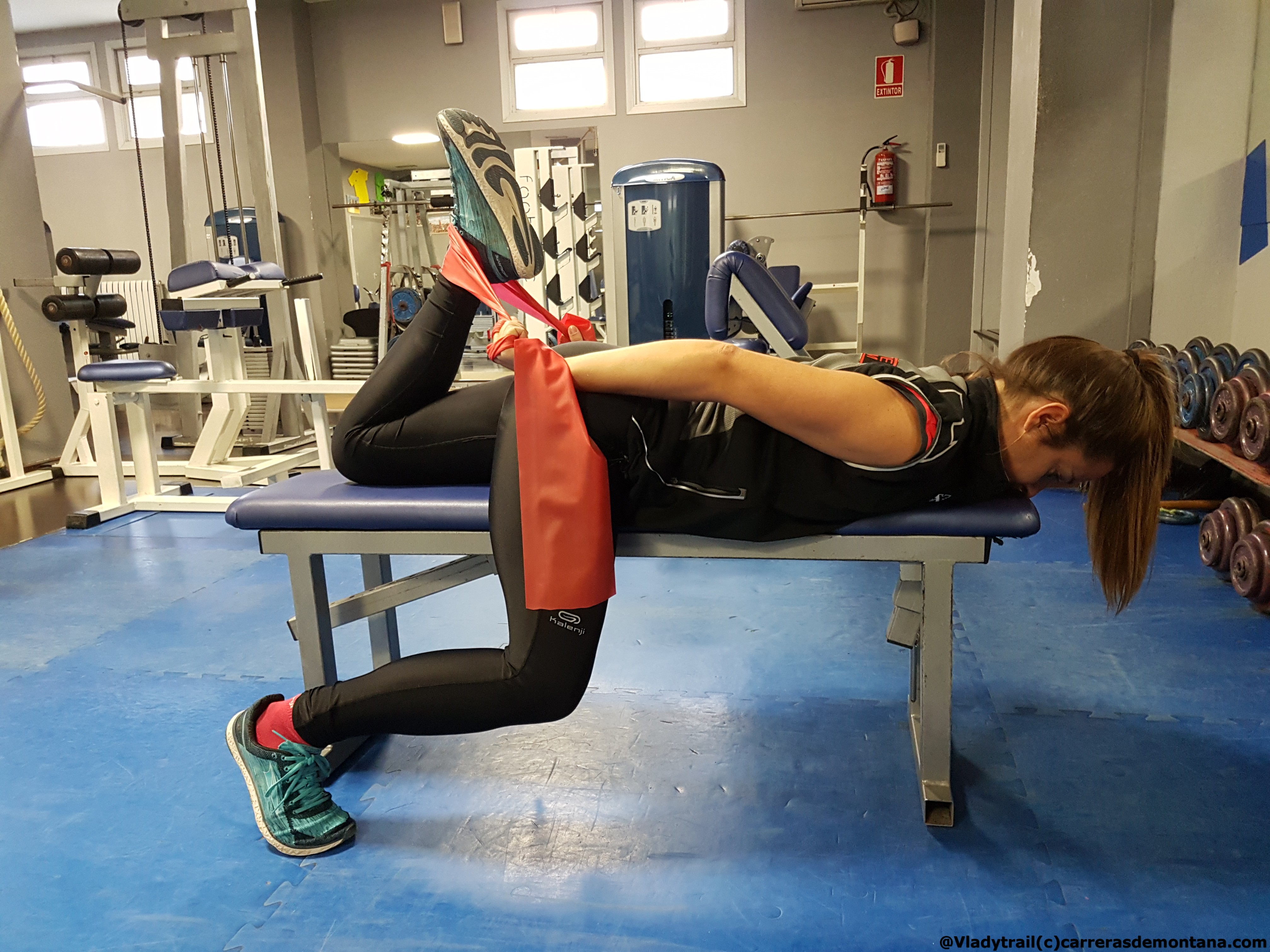 - Vamos llevando el talón hacia el glúteo con ayuda de una goma/cincha