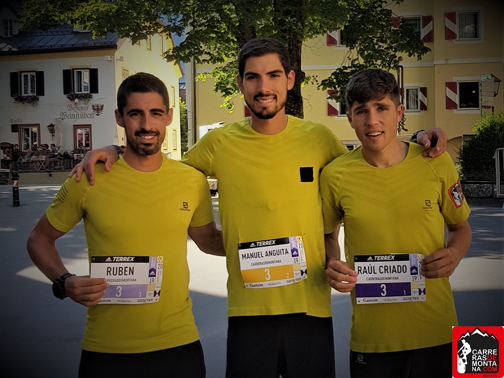 Esos últimos 13km en los que prácticamente no había sombra y en los que el calor me tenia ya abrasado tengo que luchar contra mis maltrechas piernas y tirar de cabeza para poder mantener un ritmo constante y que mis perseguidores no tuviesen opción de alcanzarme. Conforme voy entrando en las abarrotadas calles del bonito pueblo de Bad Hofgastein la emoción empieza a recorrer mi cuerpo, ¡¡AHORA SI!! El sueño se esta cumpliendo. Entro en la línea de meta para recoger a mis compañeros y realizar los últimos 700m para hacer una entrada conjunta en meta. Tras cruzar la línea de meta no puedo aguantar la emoción, mis compañeros me alzan en volandas y no puedo aguantar soltar algunas lagrimas. LO HEMOS CONSEGUIDO, CONTRA TODO PRONOSTICO, NOS PROCLAMAMOS COMO EL TERCER EQUIPO DEL MUNDO.»