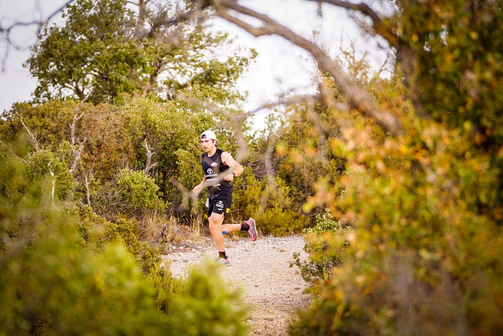 La carrera pronto se estiró entre las crestas. Al paso por el Congost de Fraguerau, las primeras luces tiñeron las agujas de oro. Delante, Víctor del Águila Pellicer marcaba un ritmo constante, sin gestos de euforia, con la economía de movimiento de quien conoce la distancia y la trampa de correr demasiado pronto. Detrás, Pau Capell Gil, el tetracampeón de la Transgrancanaria jugaba a su manera. Cerrando el trío cabecero, Raúl García Mendoza mantenía el tipo, veterano en mil batallas, con la mirada fija en los barrancos del Montsant.